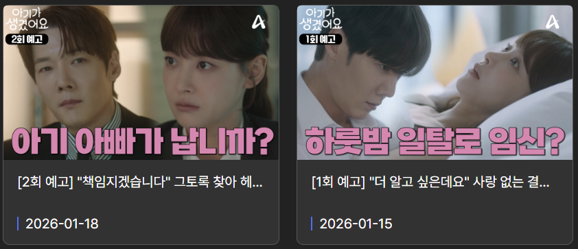 #아기가생겼어요 #아기가생겼어요출연진 #아기가생겼어기본정보 #최진혁 #오연서 #홍종현 #김다솜 #채널A드라마 #주말드라마 #로코드라마추천 #넷플릭스드라마추천 #드라마인물관계도 #웹소설원작드라마